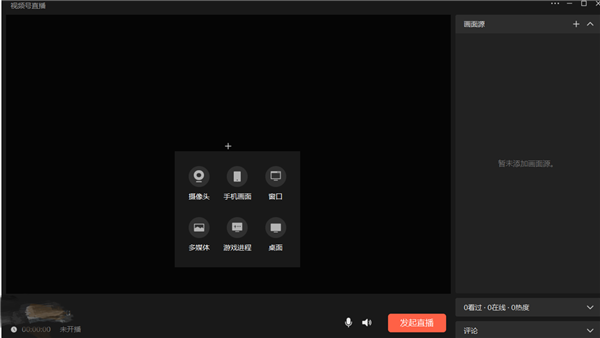 微信PC端提供的直播工具支持多种画面输入选项,点击“+” 按钮即可添加。添加之后的画面源会出现在列表当中,用户直播过程当中可以快速点击以进行画面源切换。