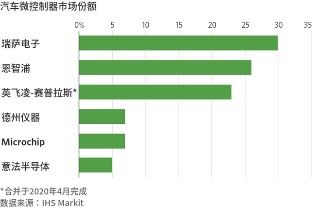 咨询公司罗兰贝格发布的《中国新能源汽车供应链白皮书2020》显示,在全球汽车半导体行业前20强中,中国本土企业仅占一席。市场研究机构StrategyAnalytics公布的数据则显示,英飞凌、恩智浦、意法半导体等企业基本垄断了汽车半导体市场,这些头部半导体企业占据中国相关市场超过九成份额,国内本土芯片企业的市场份额仅为个位数。《中国新能源汽车供应链白皮书2020》显示,在中国每年2800万辆的汽车市场,中国汽车半导体产值占全球不到5%,部分关键零部件进口量在80%至90%。