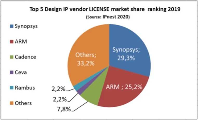 在全球主要的IP厂商中,美国公司占据了半壁江山。除了Arm之外,EDA软件工具商Synopsys和Cadence也是IP阵营的主要参与者。国内只有芯原股份上榜全球IP榜单,国产IP的产业影响力相对较小,意味着也有被卡脖子的风险。