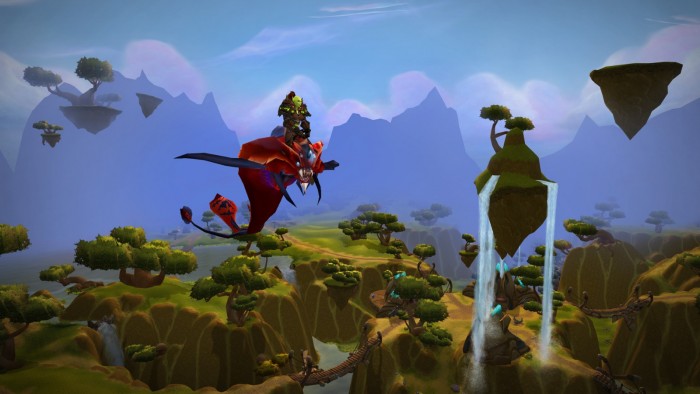 · 驾驭飞行坐骑翱翔天际:驾驭外域的飞行坐骑,在虚空风暴的混乱天空中振翅高飞,翱翔在邪能浸染的影月谷上空。
