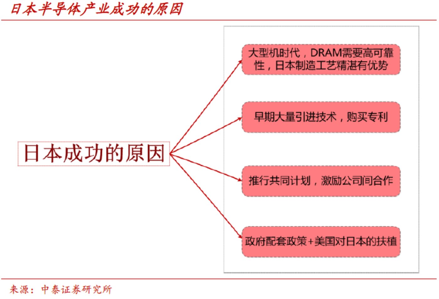 日本在极短的时间内,以强大的国家意志为主导,逐步形成了完整的产业链,构建了日本体系内成熟的半导体产业。