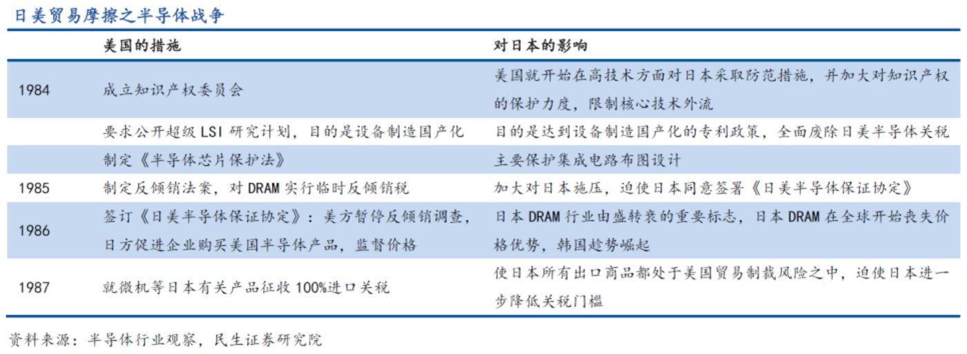 对比东芝与苏联交易所造成的影响,该制裁结果并不对等,是典型的美国行使“长臂管辖”特权,对第三国商业公司及政府发起的单方面的制裁。该事件作为同时期日美半导体争霸的谈判筹码,成为美国迫使日本在半导体行业领域做出妥协和让步的压力来源。