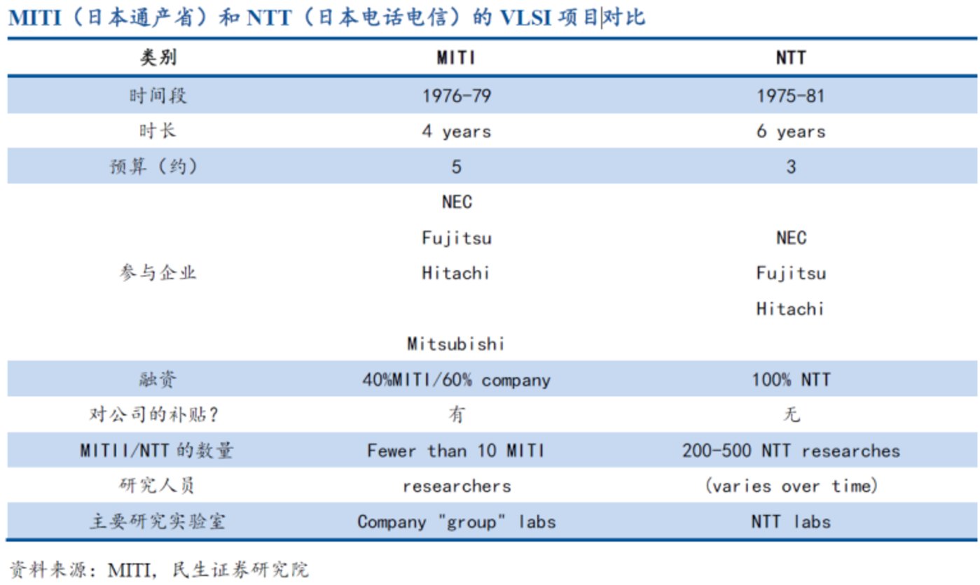 另外,以日本电信电话公社(NTTPC)牵头的商业公司,也投入到这一领域的联合研发中去,以NTTPC牵头的民间商业组织,在研发周期、投入预算、参与者等方面与通产省组织的有一定差距,但是这足以说明,日本商业机构间面对美国半导体的强势地位,已经有所觉悟,这对于后期的联合与突破,具有非常重要的指导意义。这种指导意义,对于现阶段中国的半导体行业来说,是非常具有现实意义的。