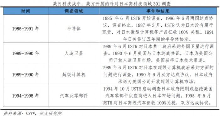 1987 年 3 月,美国政府以日本未能遵守协议为由,就微机等日本有关产品采取了征收 100%进口关税的报复性措施。1988 年美国通过“综合贸易与竞争法”,再次祭出“超级 301”条款,使日本所有出口商品都处于美国贸易制裁风险之中。1989 年美国认定日本在大型计算机、卫星和林业产品方面封闭市场,动用“超级 301”条款进行调查。