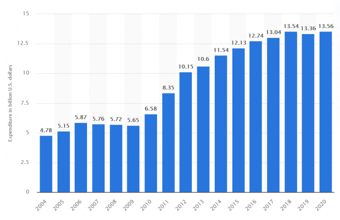 回顾2004年至今的历史,Intel的研发投入整体都是呈现增加趋势,只有2007-2009年、2019年略有降低,而增长最迅速的是2010-2012年,最高年增幅曾接近27%。