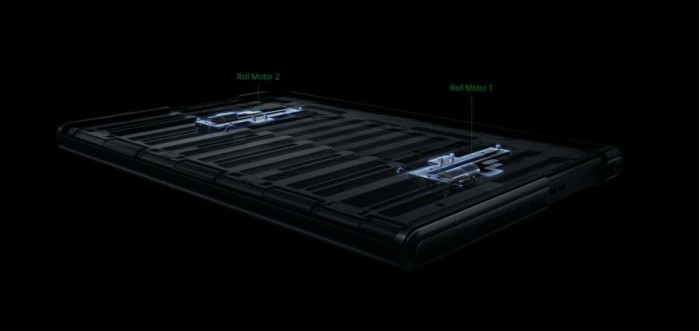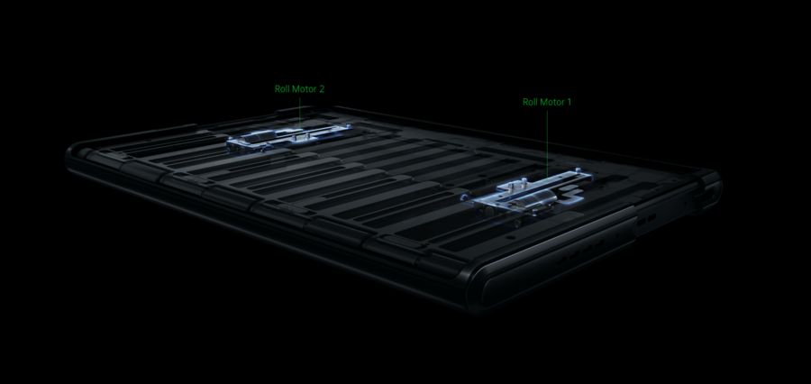 这个履带尺寸可能会增加手机的厚度,但它确保了显示屏在滚动和收回后不会出现褶皱。手机内部的两个独立电机让屏幕可以滚动和展开。Oppo解释说,两个电机协同工作,这样在屏幕移动时应力就会平均分配,以防止损坏。