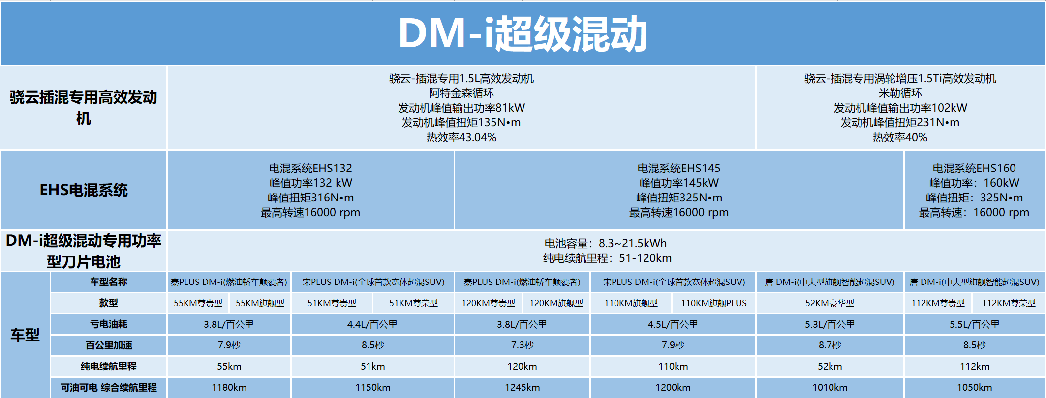 宋PLUS DM-i 实现了亏电状态下4.4L/100km的超低油耗(51KM尊贵型/尊荣型搭载EHS132),百公里加速7.9s,纯电续航里程110km,可油可电综合续航里程1200km(110KM旗舰型/旗舰PLUS搭载EHS145)。宋PLUS DM-i 补贴后预售价格为15.38万元-17.58万元,将于3月中旬正式上市。