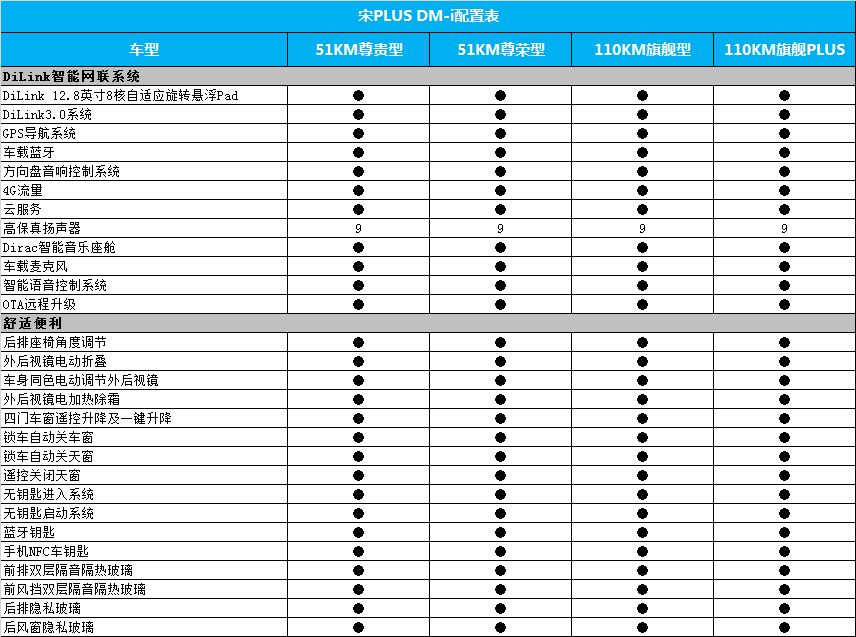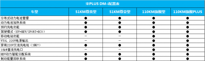 日前,我们从相关渠道获得了宋PLUS DM-i部分配置信息,新车已于此前开启预售,预售价区间为15.38-17.58万元,并预计3月中旬正式上市。新车未来将推出4款配置车型,详情见下表: