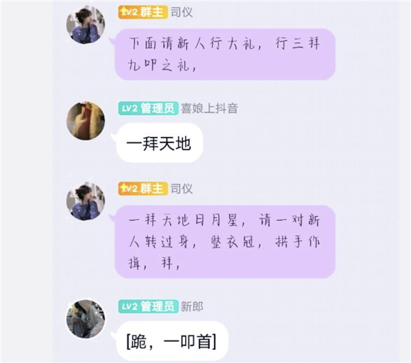 前几天,微博上的一位博主,发了几张 QQ 群里的聊天记录截图:一帮群友正在举行线上婚礼。司仪先是很专业地整了一套流程词,架势感觉比现在的不少古装剧都精致。