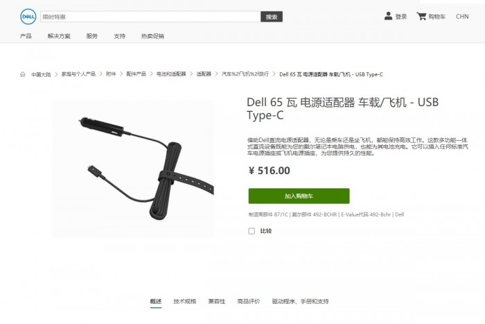 著名笔记本厂商戴尔一直以来都在为笔记本推出各种充电配件,让用户在不同场合下也能享受快充体验,日前戴尔官网上新增了一款大功率快充产品,他就是戴尔65W车载充电器,戴尔官网上定价为516元,支持自带USB-C线缆支持65W PD快充输出。