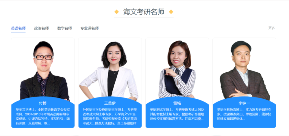 教师作为一个知识内容的演绎者和传播者,是整个考研教育环节中最重要的一环。但是名师并不能代表全部,尤其是在线上的教育产品形态中。除了名师之外,普通老师,课堂运营、服务支撑等方面同样重要。