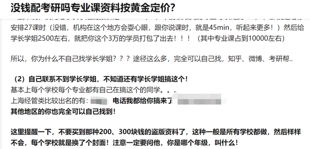 但在考研期间,考研学生并没有这些帮助,他们往往需要在对考研一无所知的情况下,从零到一了解考研。以至于哪怕报一个培训班,也面临着哪个机构靠谱、哪个老师水平更高的困惑。