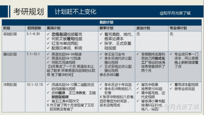 因此在登登看来,考研报不报班,报什么班,跟哪个老师并不是决定你考研是否成功的唯一因素。真正重要的在于,要根据自己的实际情况制定学习计划。