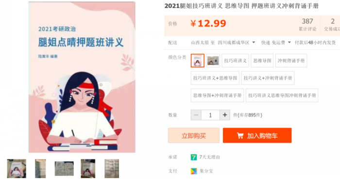 以“旺仔”老师徐涛为例,在某宝上号称“限量赠旺仔”的一套考研复习资料价格已经来到了818元。