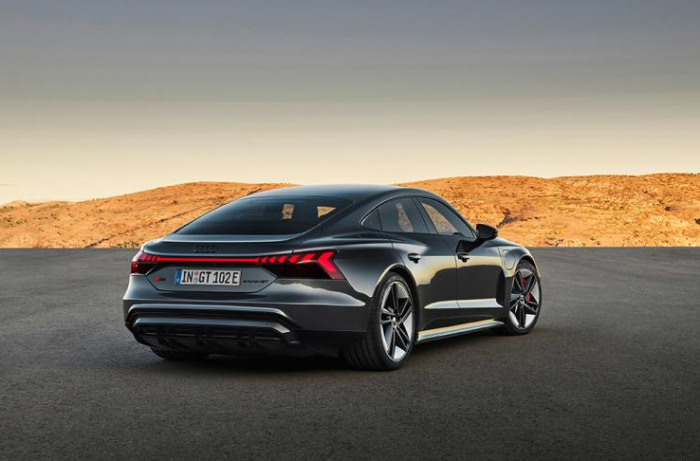 RS e-tron GT基本还原了概念车的设计风格,全新家族设计语言、整车俯冲姿态、遛背造型、大轮圈以及长轴距的设计,都使新车GT范儿十足,低趴姿态明显。
