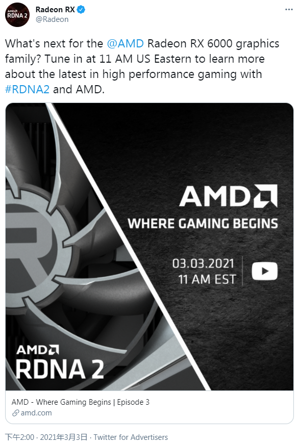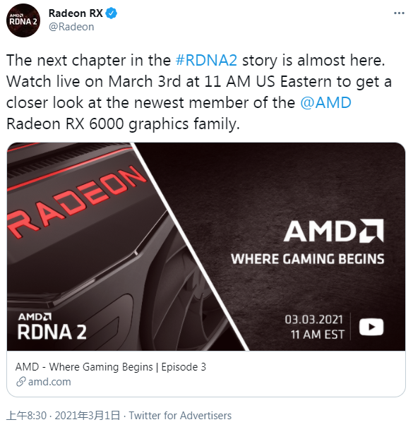 早些时候,AMD 已经预告了要在美东时间 3 月 3 日上午 11 点披露 RNA2 家族的新成员。