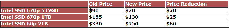 不过,距离公布仅仅两天后,Intel紧急调整了670p在海外市场的售价,512GB下调为70美元(约合452元),1TB下调为130美元,2TB下调为250美元,降幅最高80美元(约合517元)。这样一来,就合理多了。