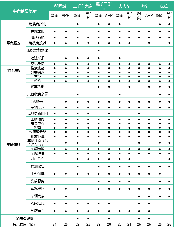 个别平台怠于审核把关。体验员对58同城展示车辆信息虚假现象进行投诉后,58同城先将该错误车辆信息下架,次日又将错误车辆信息重新上架。说明平台对车辆信息真实性的审核上把关不严,且在部分消费者投诉之后,仍未更改相应信息,显示了平台对消费者投诉问题未有效处理。