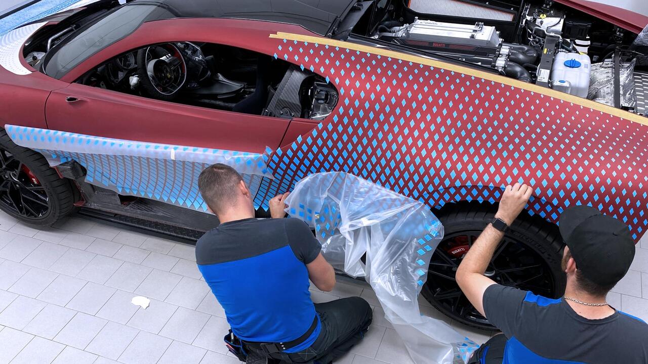 “ladybug”的中文释义为“瓢虫”,这也是这辆布加迪Divo的设计灵感来源之一。但不同于瓢虫身上的圆形斑点,这辆Divo的车主选择将1600个菱形块设计在车身至上,并通体采用特制的红色车漆作为底色。据悉,新车特殊的车身花纹耗时一年半制作,并保证了这些花纹在贴合车身复杂曲面的同时,不会导致菱形块的形变失真。
