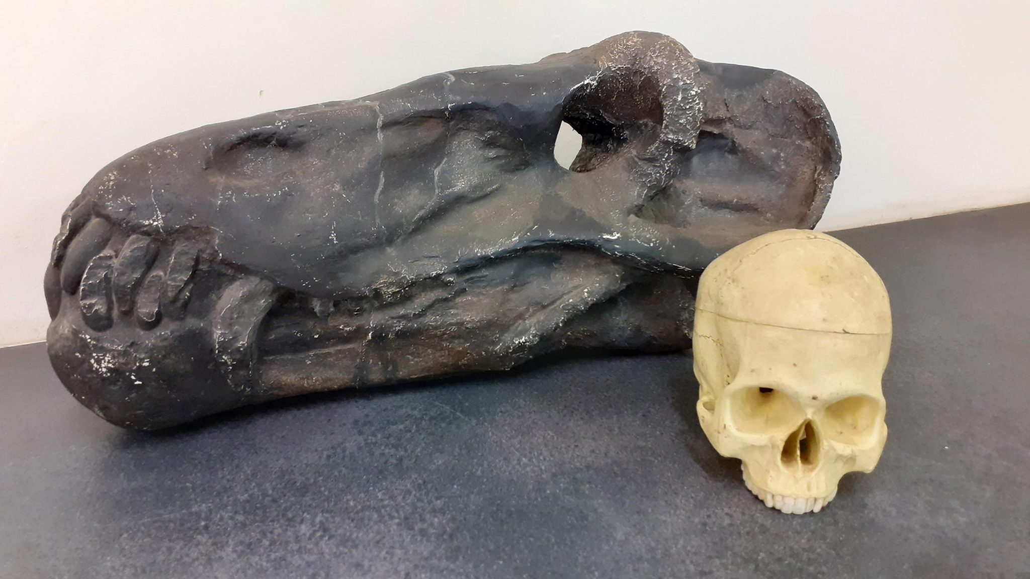 安蒂欧兽头骨跟现代人类头骨比较