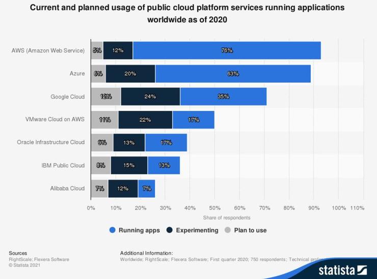 3、63%的企业在Azure上运行系统,仅次于AWS。
