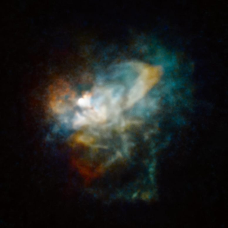 这颗恒星在生命的最后阶段,正在排出巨大的尘埃云。最终,这颗膨胀的恒星可能会以超新星的形式爆炸,或者干脆崩溃,形成一个黑洞。