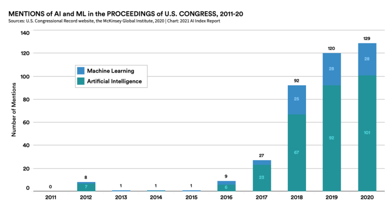 据外媒VentureBeat报道,中国在人工智能研究论文总数上已经超过了美国,获得资金的人工智能初创公司越来越少,美国国会比以往任何时候都更多地谈论人工智能。这是斯坦福大学上周发布的年度报告《2021年人工智能指数报告》中强调的三大趋势。该报告试图记录人工智能的进展,以及该技术对教育、创业公司和政府政策的影响。报告详细介绍了人工智能主要子领域的性能进展,如深度学习、图像识别和物体检测,以及蛋白质折叠等领域。