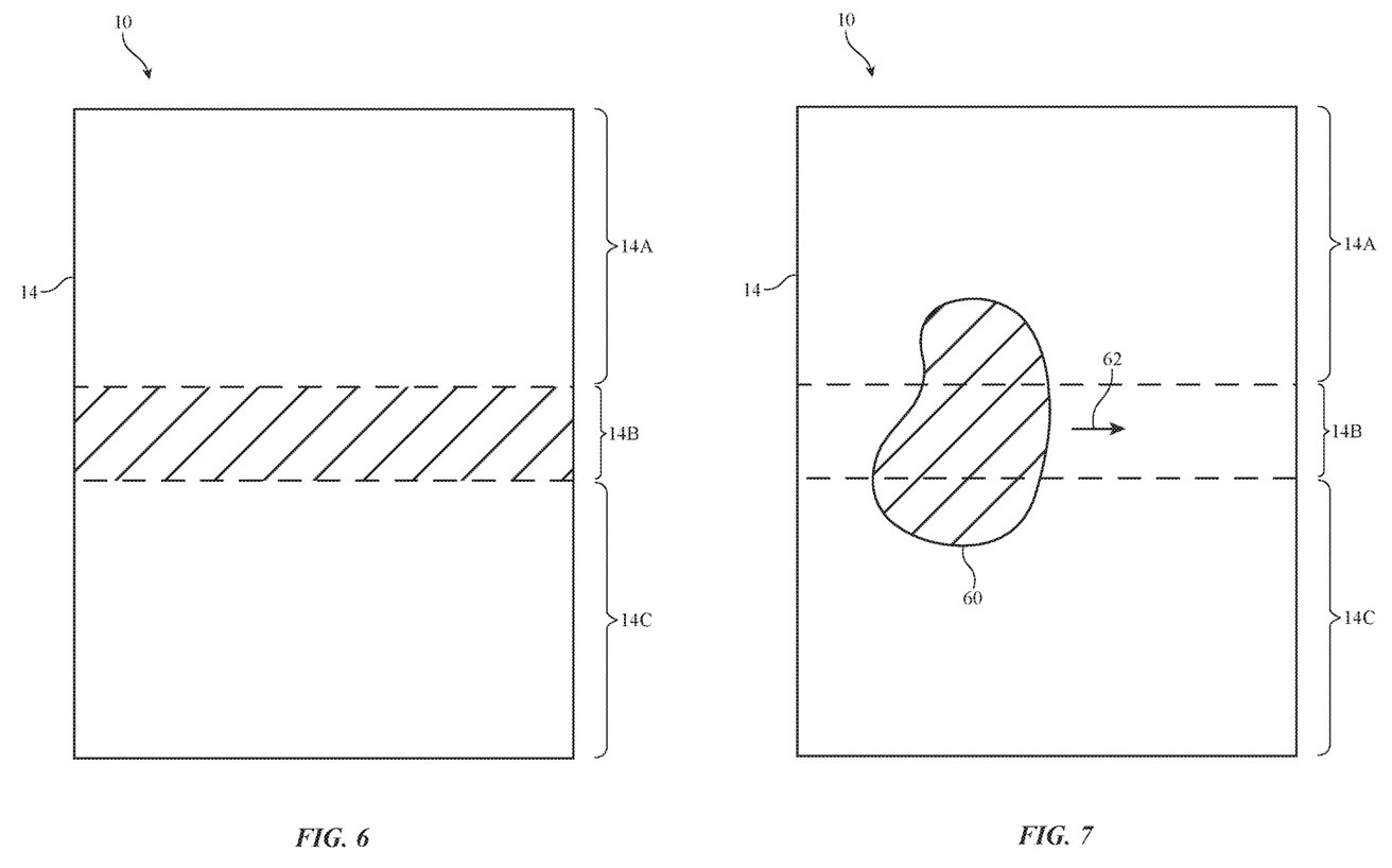 至于固定显示屏本身的温度,苹果建议可以有几种方法。最简单的是在显示屏潜在的最薄弱点下方增加加热元件。然而,这样做会影响设备的设计,因为它可能会迫使物理设计变得更大,以纳入新的组件,。苹果还建议一个更好的想法是利用显示屏本身。由于屏幕会发出光,它也可以发出热量作为副产品,这些热量将被应用到显示屏上。