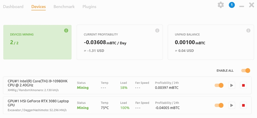 为了挖矿,现在的矿工们真是无所不用其极,不但桌面显卡一扫而空,就连笔记本、游戏机都不放过。那么,笔记本挖矿效率如何呢?近日,微星官方就做了一次笔记本挖矿测试,结果还真有点出乎意料。