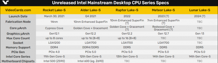 今天,VC拿到了一张内部路线图,罗列了Tiger Lake/Rocket Lake、Alder Lake、Raptor Lake这三代产品。