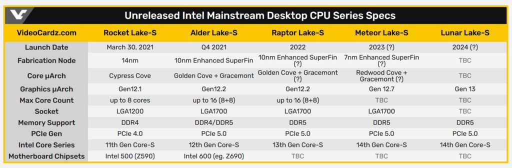 在 Alder Laker 之后,英特尔可能会推出第二个 10nm CPU 产品线-- Raptor Lake,然后再转向 7nm 工艺节点。该信息来自于知名网站 Videocardz,根据曝光的英特尔 2020-2022 年桌面 & 移动 CPU 系列路线图显示,Raptor Lake 将会成为 2022 年的核心产品。