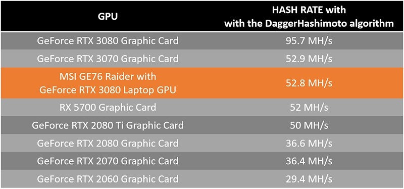 众所周知,现在的矿工为了挖矿无所不用其极,不仅将桌面显卡一扫而空,连游戏本和游戏机都不放过。那用笔记本挖矿效率如何呢?近日微星官网发布博文,介绍了用搭载RTX 3080的GE76 Raider游戏本挖矿是一种什么样的体验。GE76 Raider游戏本是市场上不多的RTX 3080 Max-P满血版游戏本之一,显卡功耗释放到155W。