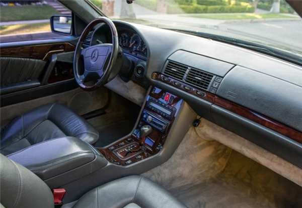 尽管该车已有26年的车龄,但这台车内饰保养的十分到位,车内多处均采用了真皮包裹,木质饰板,还有翻毛皮材质,可以说非常豪华。