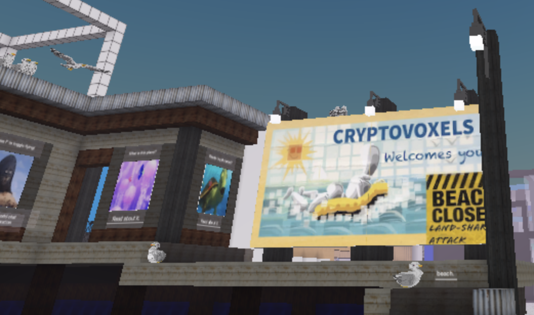 描述中提及的Cryptovoxels和Decentraland则均是虚拟乐园,平台有虚拟艺术馆等虚拟空间。据悉,Cryptovoxels出售虚拟原始地皮。有Decentraland玩家形容,Decentraland就像电影《头号玩家》里的游戏绿洲。