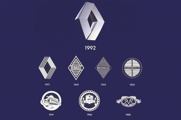回顾雷诺的标志发展史,其实最新版本在1972年版上还能找到似曾相识的影子,而类似钻石菱形的家族式风格也可以追溯到近百年前的1925年。