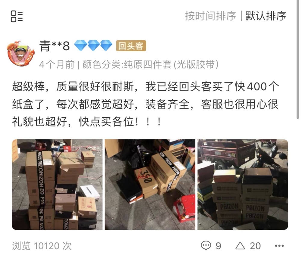 所以,很多被快递摔瘪了鞋盒的人,不得不像化妆品制假商家去淘lamer小瓶子那般,去网络二手交易平台之中苦苦寻找同款、同尺寸且八角尖尖的鞋盒踪迹,好降低损失、顺利售卖、迅速变现。