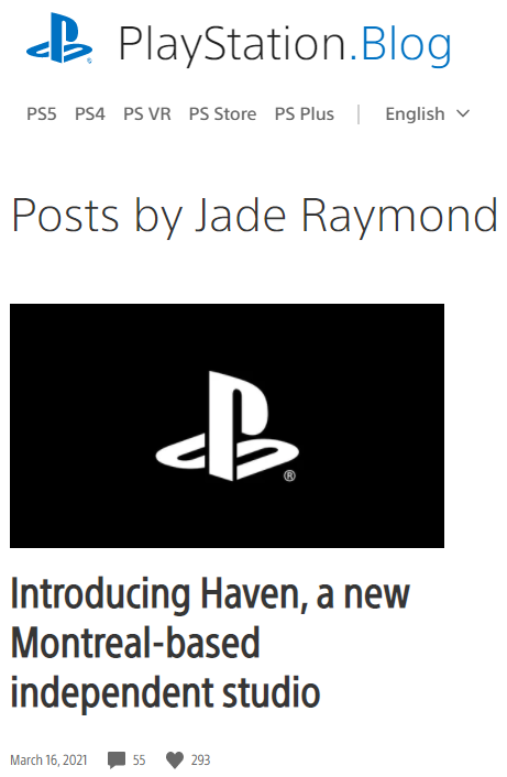 今天凌晨,索尼PS官方博客发布消息,2月份宣布从谷歌Stadia团队离职的Jade Raymond已经在蒙特利尔成立名为 Haven Studios 的全新开发团队。该团队由索尼互动娱乐资助,目前正为PS主机开发全新游戏IP。