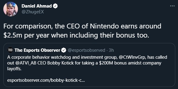 业界人士评论说,Switch正在哗哗印钱,任天堂总裁一年也只拿250万美元报酬(包括所有奖金):