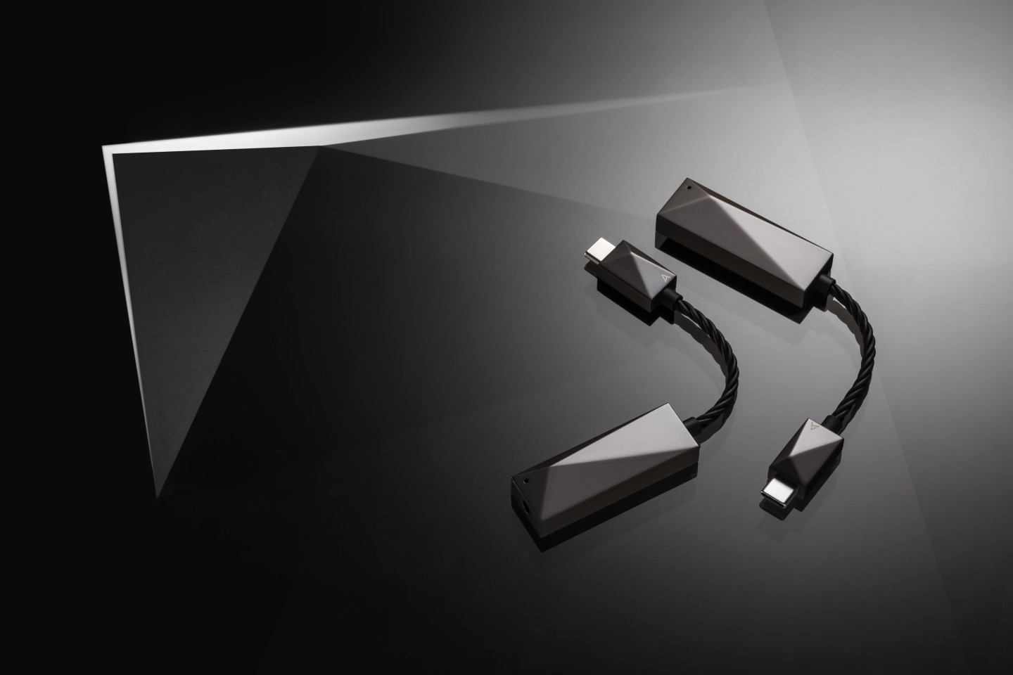 主体一端有一个3.5mm插孔,可以接受3极和4极插头,另一端则连接到一条屏蔽的镀银铜线,最后是一个USB-C接口。这款便携式数模转换器被认为能够驱动高阻耳机,整个设备的大小和一包口香糖差不多,重量只有25克(0.8盎司)。