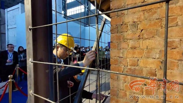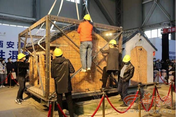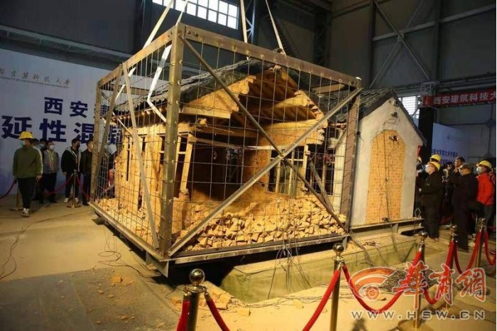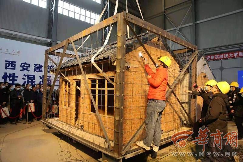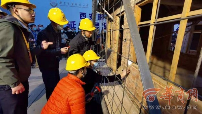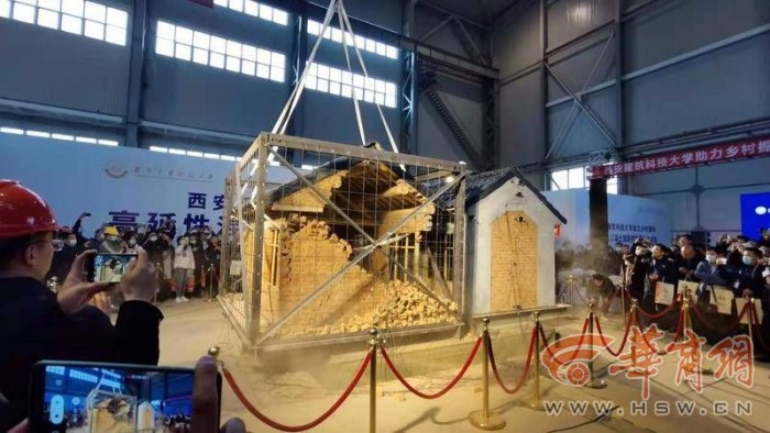 3月19日下午,西安建筑科技大学举行高延性混凝土加固农房振动台试验。
