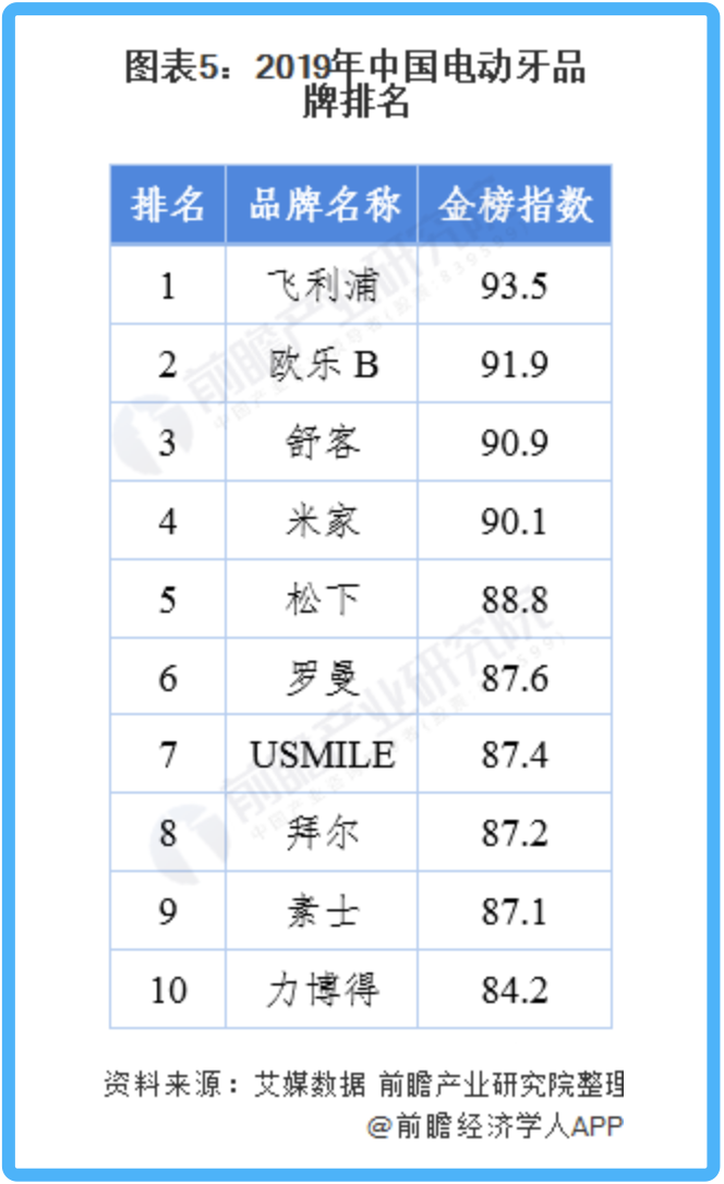 前瞻产业研究院在《2020年中国电动牙刷产品销量与竞争格局分析》中指出,在中国14亿人口体量下,当前8%的电动牙刷市场空间已经养活了300余个电动牙刷品牌。