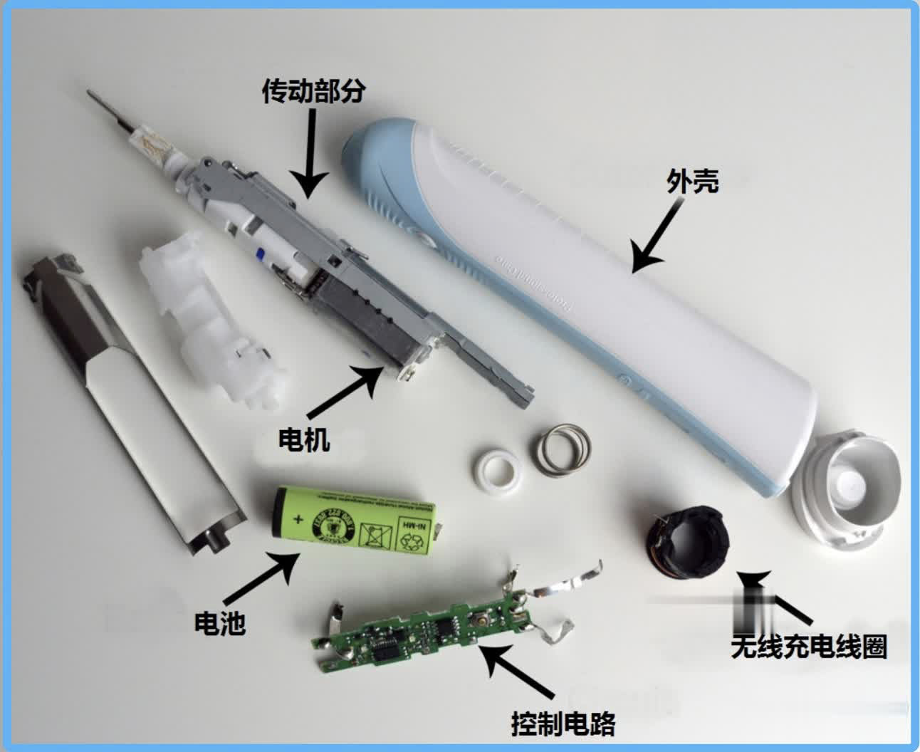 从消费者视角看,一款电动牙刷主要是由刷头、机身、充电座(采用无线充电的)三部分组成。实际组装过程中,需要非常多零配件,涉及塑料配件、电子配件、电动芯片配件和包装材料配件等。
