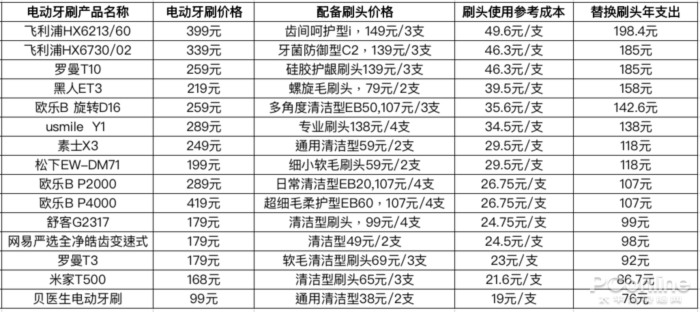 专业IT门户网站太平洋电脑网算了一笔账,从市面上100-500元主流电动牙刷中挑选出15款,按照三个月替换一次刷头的频率,计算年支出成本。