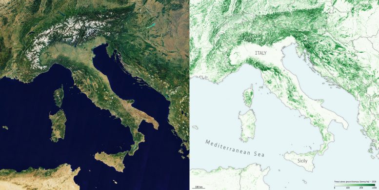 作为欧空局气候变化倡议的一部分,一个研究小组生成的新地图提供了2010年、2017年和2018年三个独立年份的地面生物量分布和空间密度的全球视图。这些地图来自哥白尼哨兵-1号任务、环境卫星的ASAR仪器和日本宇宙航空研究开发机构的高级陆地观测卫星(ALOS-1和ALOS-2)的数据组合(视年份而定),以及来自地球观测来源的其他信息。
