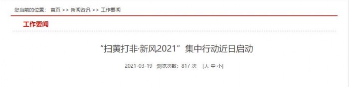 近日,全国“扫黄打非”办公室官方消息称,即日起至11月底开展“新风2021”集中行动,大力扫除淫秽色情低俗、暴力恐怖迷信等有害信息和出版物,深入打击假媒体假记者站假记者及侵权盗版等违法违规活动,积极营造健康向上的社会文化环境。