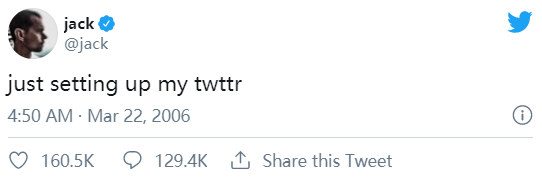 他卖的是推特史上的第一条推特,发布于 15 年前,内容是“ 刚刚设置好我的推特 ”。