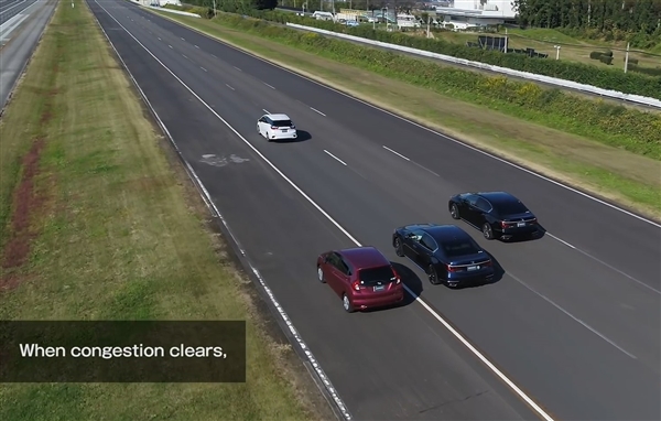 随着前后间距及车速不断增加,车辆会在条件允许时提示驾驶员脱手,自动驾驶系统再次接管车辆。