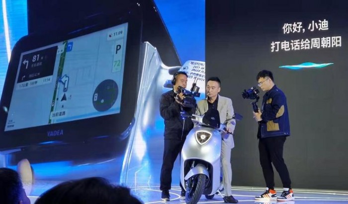 在发布会现场,沈长海通过语音功能演示了冠智2.0的导航、播放音乐等功能,还通过电动车自带系统打电话给雅迪科技集团产品技术研究院院长周朝阳,演示了电动车的通话功能。