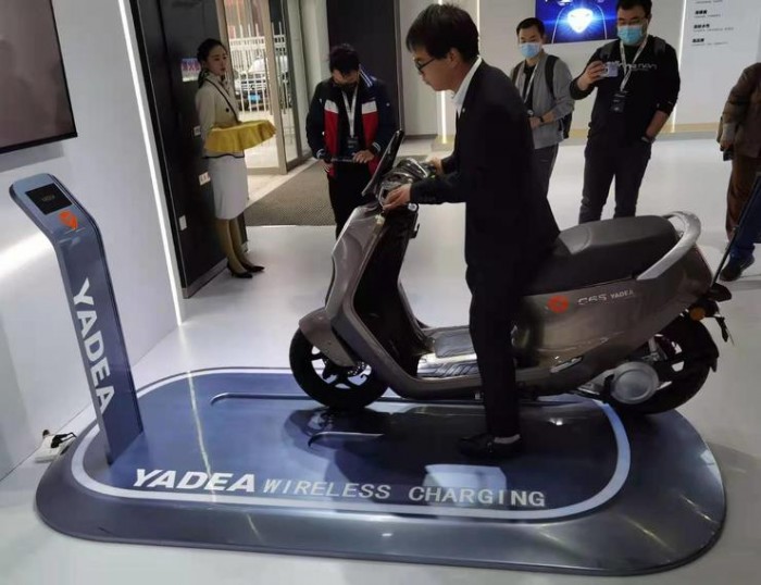 值得注意的是,雅迪还特别为电动车开发了一套无线充电系统,用户只需要将电动车停到该系统上,电动车就可以自行充电,充电功率高达350W。