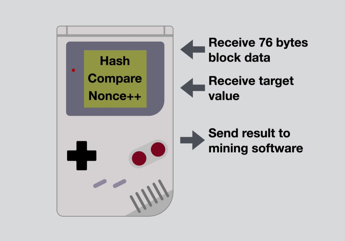 StacksMashing 欣喜地表示,Game Boy 约有每秒 0.8 的哈希算力。作为对比,专用的 ASIC 矿机,算力约为每秒 125 万亿。